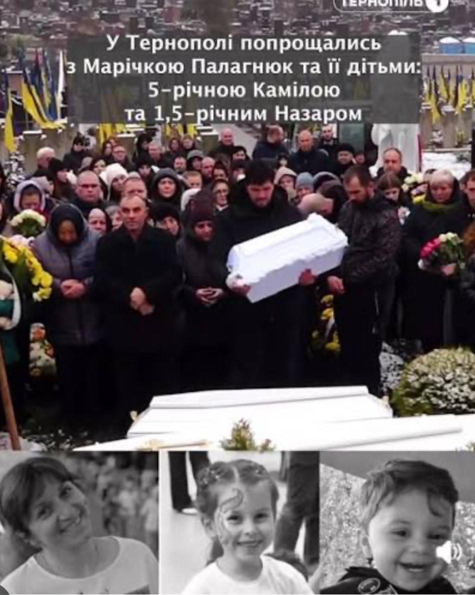 In Ternopil, they said goodbye to Marichka Palahniuk and her children: Kamila, 5 years old, and Nazar, 1.5 years old.